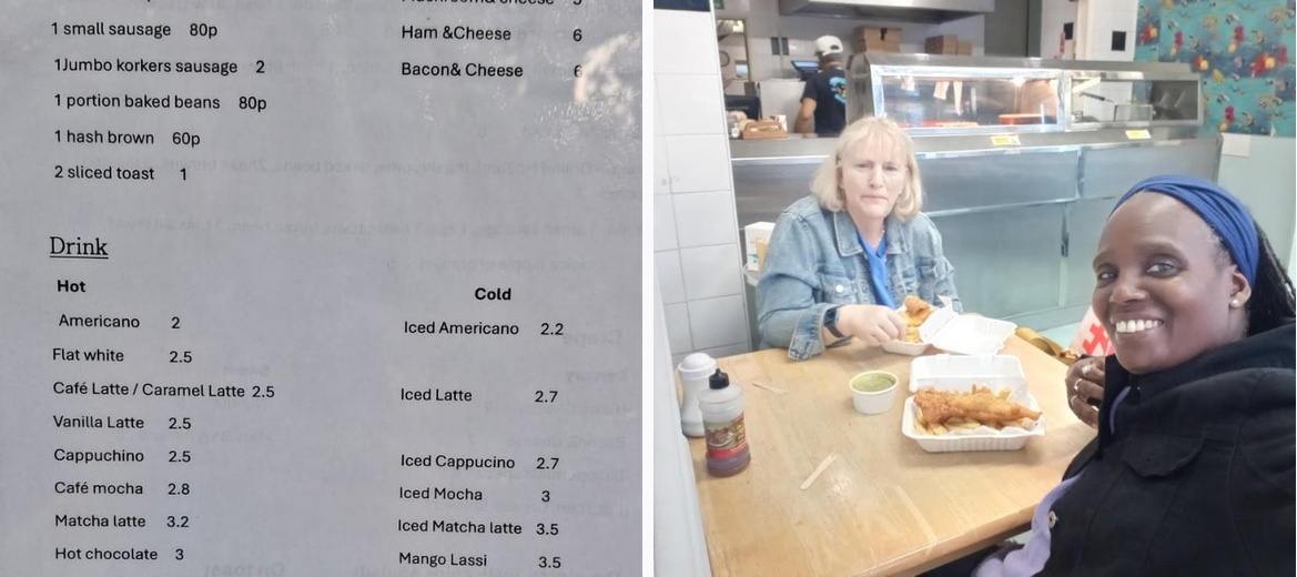My friend Valerie and I really enjoyed our portion of fish and chips. We sat inside the restaurant and loved the atmosphere with a dad and children playing on the piano. The fish and chips were freshly fried so delicious. Thank you. We shall return to your establishment when in Deal.😀